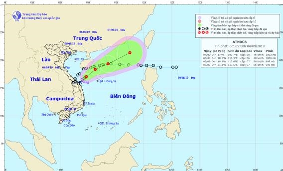 Theo Trung tâm dự báo Khí tượng Thuỷ văn Quốc gia, hồi 04 giờ ngày 04/9, vị trí tâm áp thấp nhiệt đới ở khoảng 17,0 độ Vĩ Bắc; 109,7 độ Kinh Đông, cách đất liền các tỉnh Quảng Trị-Quảng Ngãi khoảng 180km về phía Đông Đông Bắc. Sức gió mạnh nhất vùng gần tâm áp thấp nhiệt đới mạnh cấp 6 (40-50km/giờ), giật cấp 8. Bán kính gió mạnh cấp 6, giật cấp 8 khoảng 60km tính từ tâm áp thấp nhiệt đới.