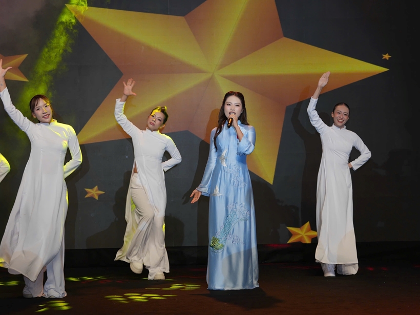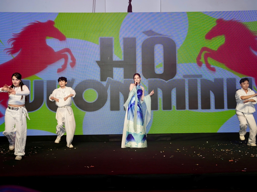 | Ca sĩ Hồ Ngọc Hà trình bày ca khúc Rực rỡ Việt Nam tôi tại buổi lễ. |