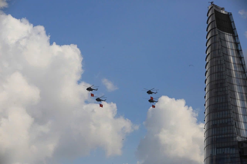 Sáng 25/4/2025, các biên đội trực thăng, tiêm kích Su-30MK2 gấp rút hợp luyện trên bầu trời TP Hồ Chí Minh chuẩn bị cho Lễ diễu binh, diễu hành mừng 50 năm Ngày Giải phóng miền Nam, thống nhất đất nước.