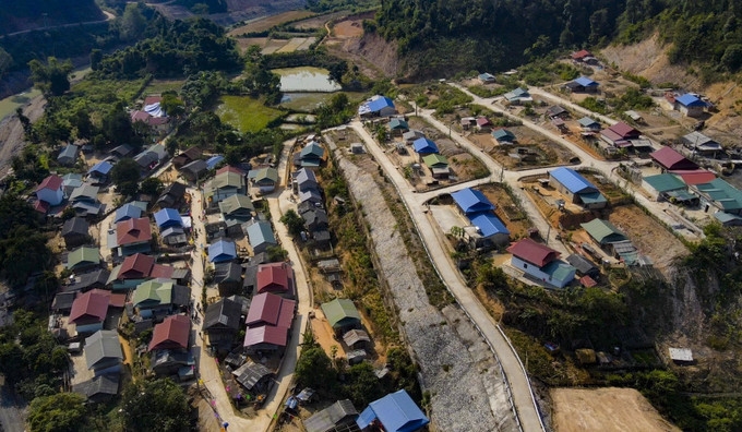 | Bản Púng Bon, xã Thanh Yên, Điện Biên, nơi đồng bào dân tộc Cống sinh sống được tái định cư khang trang. |