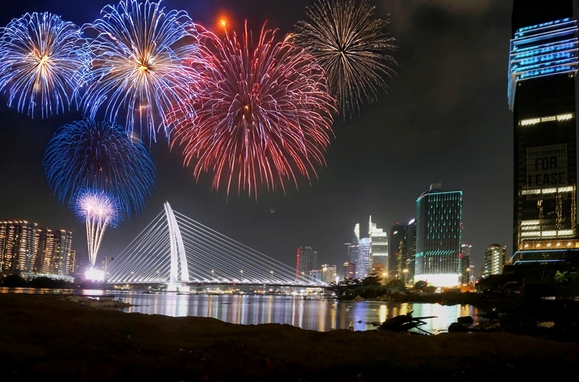 | TP Hồ Chí Minh bắn pháo hoa chào mừng Kỷ niệm 50 năm Ngày Giải phóng miền Nam, thống nhất đất nước. |