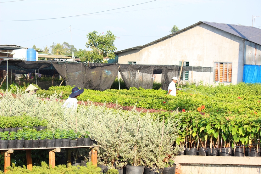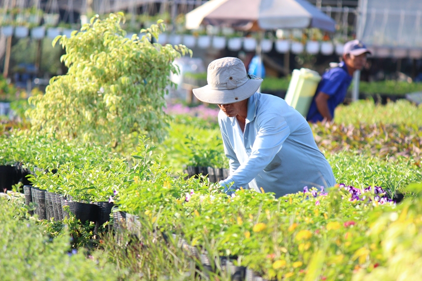 | Cuối năm, mặc dù giữa trời nắng oi nhưng trên vườn hoa người nông dân trồng hoa vẫn tất bật đều tay làm việc. |