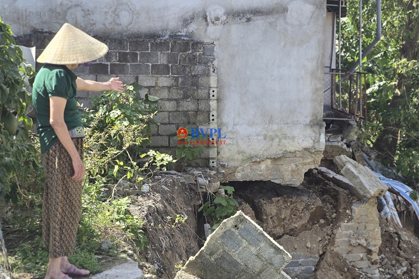 Không chỉ người dân thôn 3, hàng chục hộ gia đình ở thôn 7 xã Lam Sơn cũng đang sống trong cảnh “ăn không ngon, ngủ không yên”. Đây vốn là khu dân cư dành cho những hộ thuyền chài từng lênh đênh trên sông, được nhà nước hỗ trợ cấp đất để xây dựng nhà cửa. Từng hy vọng sẽ “an cư lạc nghiệp” sau khi rời thuyền, nay họ lại phải đối mặt với điểm nóng nguy hiểm nhất. Tình trạng sạt trượt bờ sông vốn âm ỉ nhiều năm, nhưng thời gian gần đây, sau các trận bão liên tiếp và lũ từ thượng nguồn đổ về, mức độ sạt lở ngày càng nghiêm trọng, ăn sâu sát tới móng nhà.
