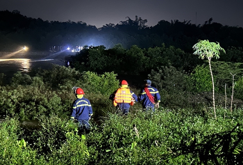 | Lực lượng Cảnh sát PCCC và CNCH làm việc xuyên đêm tìm kiếm nạn nhân bị đuối nước tại huyện Hải Hà. Ảnh: CAQN |