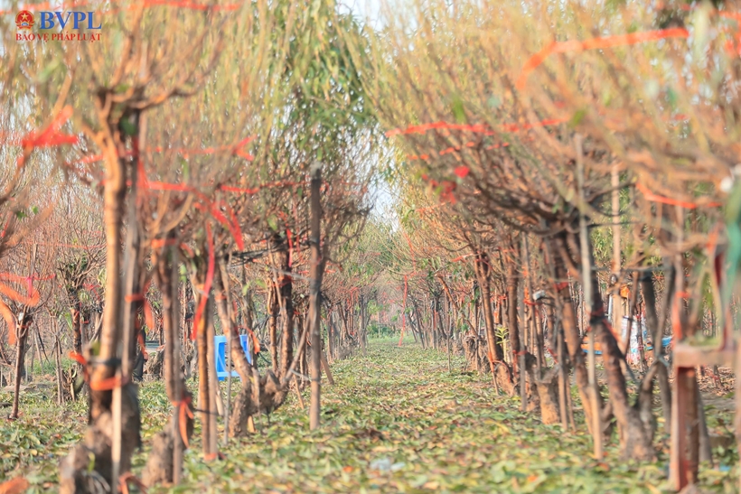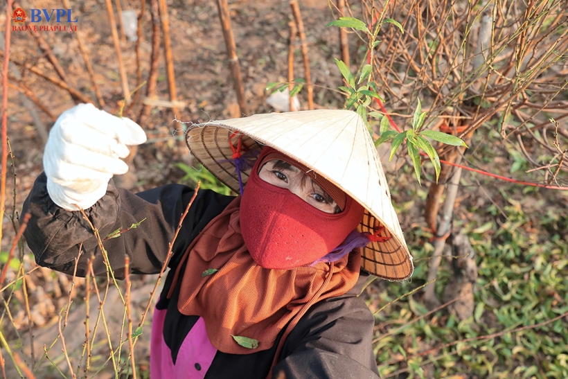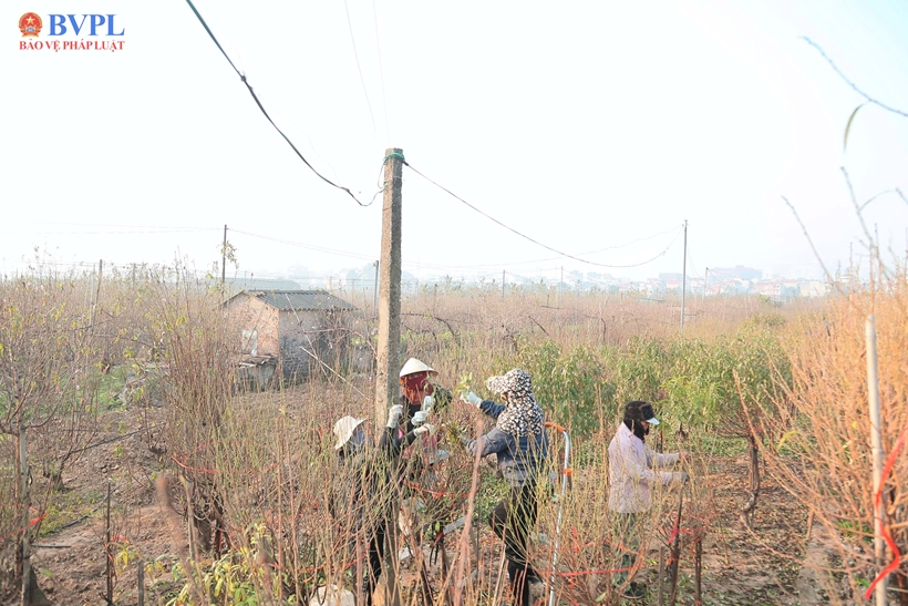 | Ghi nhận tại làng đào Nhật Tân, trên khắp các vườn đào, từ những gốc đào bích, đào phai đến đào đỏ, hàng nghìn cây đều lần lượt được người dân tiến hành tuốt lá cẩn trọng, một công đoạn quyết định tới 70% khả năng hoa nở đúng thời điểm. |