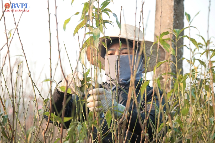 | Trong nghề trồng đào, tuốt lá được xem là công đoạn then chốt, có ý nghĩa quyết định đến thời điểm và chất lượng hoa nở dịp Tết. |