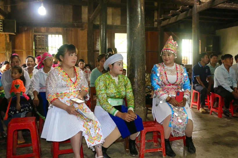 | Bà con nhân dân tỉnh Cao Bằng đang được tuyên truyền phổ biến pháp luật. |