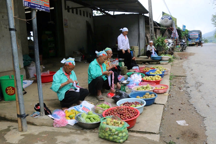 | Một góc chợ cóc trong hoạt động hàng ngày trên vùng cao. |