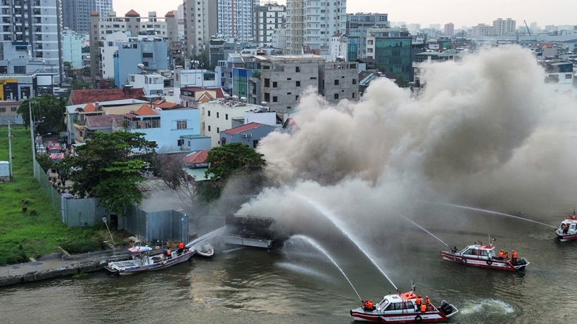 Chỉ sau ít phút, ngọn lửa nhanh chóng lan rộng, bao trùm toàn bộ thân tàu. Cột khói đen đặc bốc cao khiến người đi đường trên cầu Sài Gòn và cư dân các tòa nhà cao tầng lân cận đều có thể quan sát thấy.
