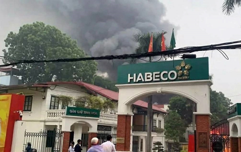 Cháy lớn tại Nhà máy bia Habeco, cột khói bốc cao nghi ngút