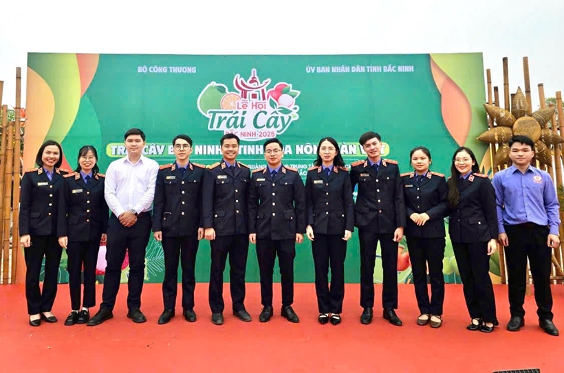 | Chi đoàn VKSND khu vực 5, tỉnh Bắc Ninh chụp ảnh lưu niệm tại Lễ hội trái cây Bắc Ninh năm 2025. |