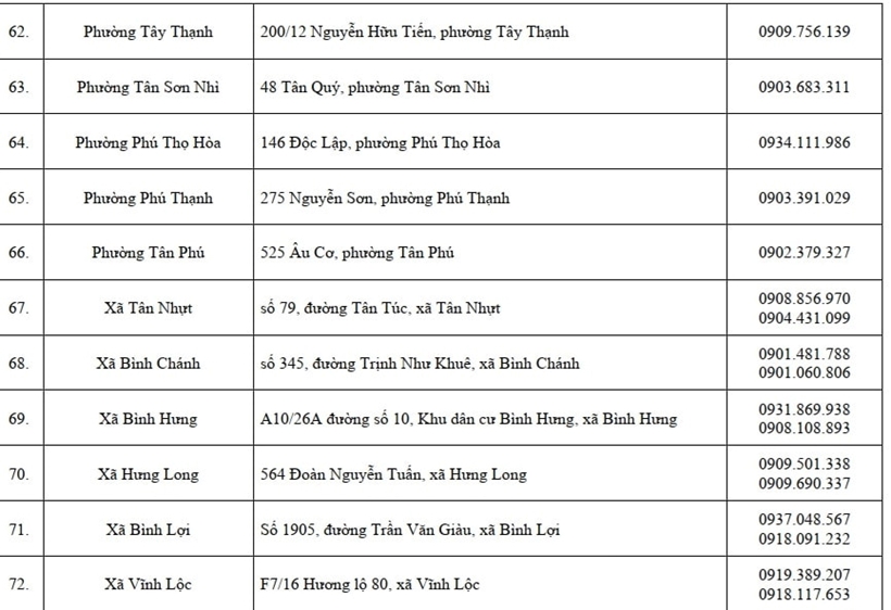 Theo đó, UBND TP Hồ Chí Minh công khai thông tin địa điểm, đường dây nóng của 168 Trung tâm Phục vụ Hành chính công cấp xã trên địa bàn để tạo điều kiện thuận lợi cho người dân, doanh nghiệp liên hệ công tác sau sắp xếp đơn vị hành chính trên địa bàn TP Hồ Chí Minh mới.