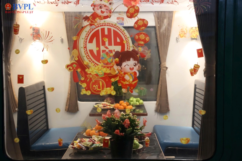 | Tàu được trang trí đầy không khí Tết giúp hành khách mang lại cảm giác ấm cúng như ở nhà. |