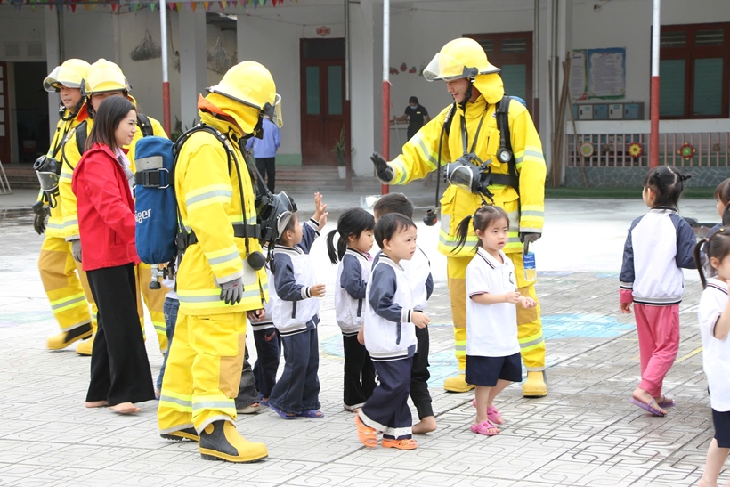 | Đội phòng cháy chữa cháy hướng dẫn các cháu học mầm non tránh nạn khi xảy ra hỏa hoạn. |
