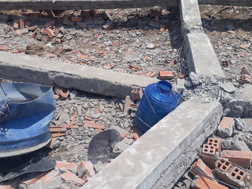 | Hiện trường vụ sập tường khiến 6 người chết, 2 người bị thương. |