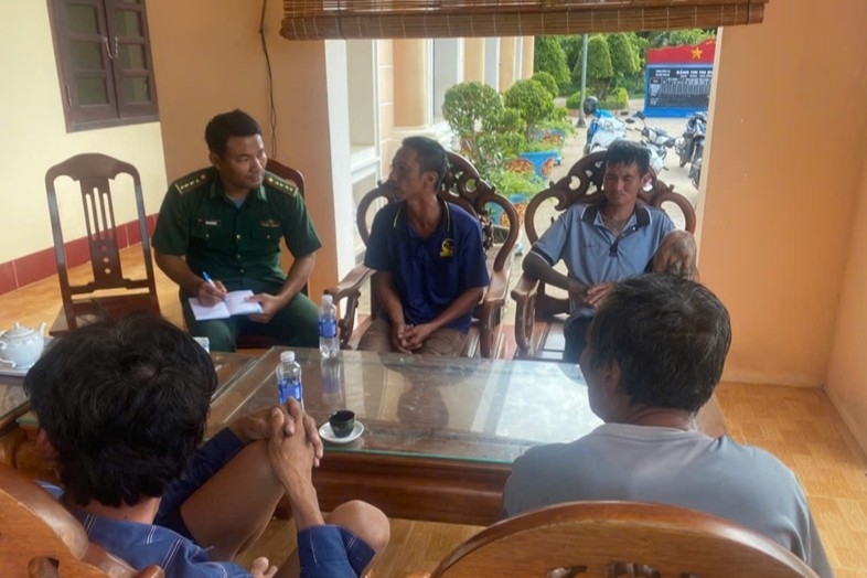 Chỉ huy Đồn Biên phòng Thổ Châu (Bộ đội Biên phòng tỉnh An Giang) thăm hỏi, động viên tinh thần 4 ngư dân.