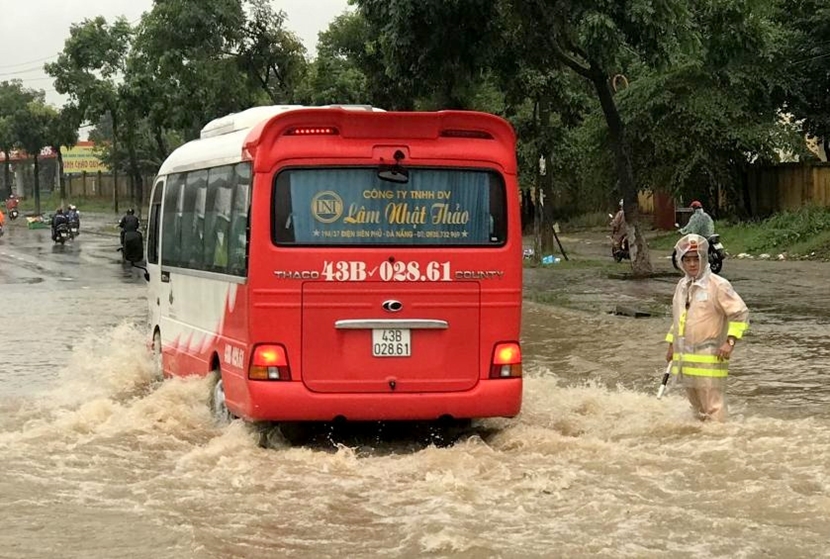 Do lượng mưa lớn, một số tuyến đường trên địa bàn TP Đà Nẵng như Hàm Nghi, Nguyễn Văn Linh, Hà Huy Tập, Tô Ngọc Vân, Văn Cao… bị ngập sâu. Một số tuyến đường ngập đến 0,5m.
