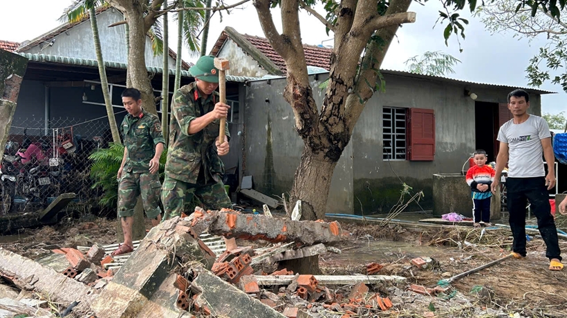 | Các lực lượng chức năng hỗ trợ người dân khắc phục thiệt hại. |
