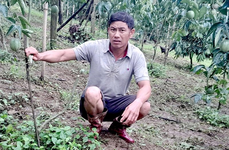 | Ông Dũng bên vườn chanh dây bị chặt phá. |