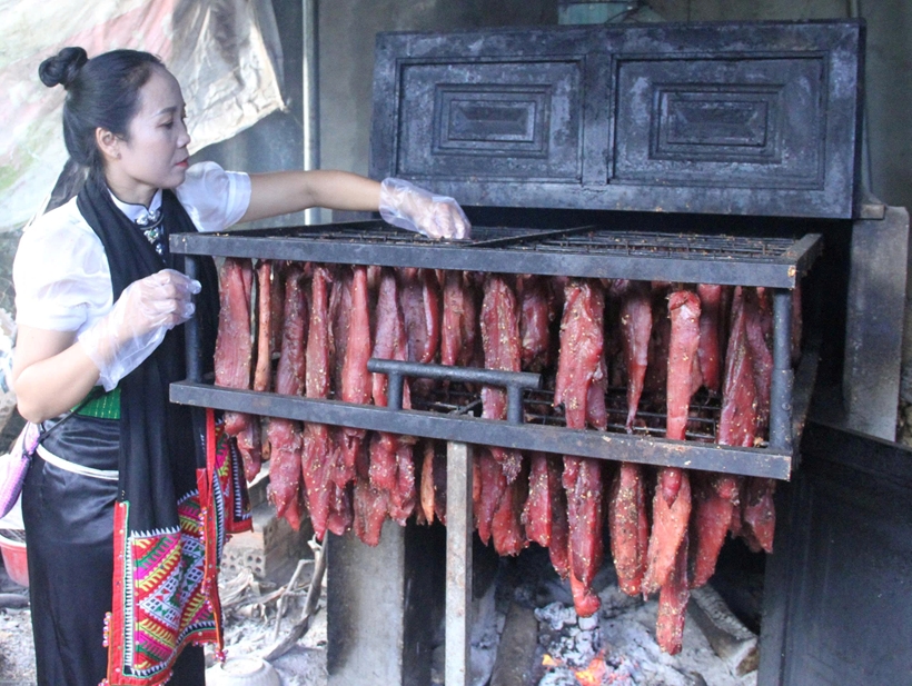 | Món thịt trâu, thịt bò gác bếp của người Thái luôn để lại ấn tượng khó quên cho thực khách. |