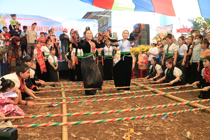 | Múa sạp trong lễ hội của dân tộc Thái. |