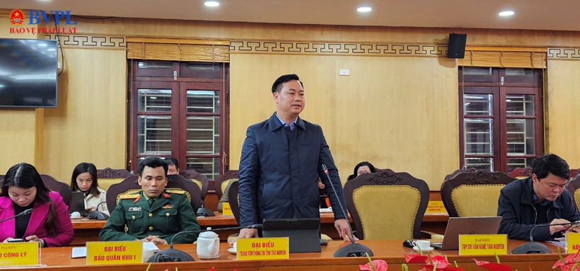 | Đồng chí Tạ Văn Lộc, Giám đốc Trung tâm Thông tin - Tổng Biên tập Cổng Thông tin điện tử tỉnh Thái Nguyên phát biểu và đóng góp ý kiến tại Hội Nghị. |