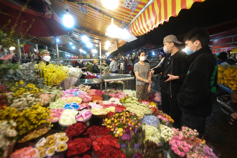 Thời tiết Hà Nội về đêm lạnh buốt kèm theo mưa phùn, làm cho số lượng người đi mua càng ít. Một khách mua hoa chia sẻ: "Nhà tôi gần đây, nên cứ đến cận ngày lễ tết thì lại tranh thủ ra đây trước để mua ít hoa về cắm. Mọi năm đi mua phải chen chúc, năm nay thì vắng và hoa thì rẻ hơn".