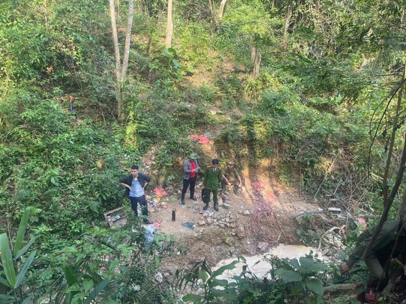 Tại hiện trường, đoàn phát hiện nhiều hố đào, bãi đất đá và dụng cụ phục vụ khai thác vàng. Các dấu vết cho thấy, hoạt động đào đãi diễn ra lén lút trong thời gian gần đây.
