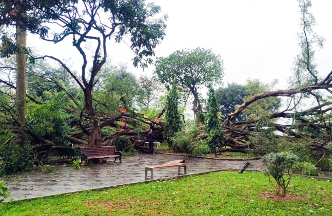 Khoảng 15h chiều 24/2, tại vườn hoa Lý Tự Trọng (thuộc phường Tây Hồ, Hà Nội), một cây si cổ thụ có đường kính gốc hơn một mét, cao khoảng 15 m bất ngờ đổ sập trong lúc thời tiết có mưa phùn.
