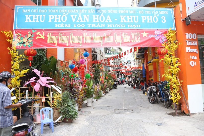 | Tại các con hẻm như hẻm 100 đường Trần Hưng Đạo, hẻm 153 đường Nguyễn Thị Minh Khai, hẻm 353 Phạm Ngũ Lão,... ở quận 1 đều đã "khoác áo mới" để chuẩn bị đón Tết. |