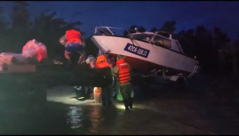 | Các lực lượng chức năng phối hợp cứu nạn, cứu hộ người dân tại những khu vực bị nước ngập chia cắt. |