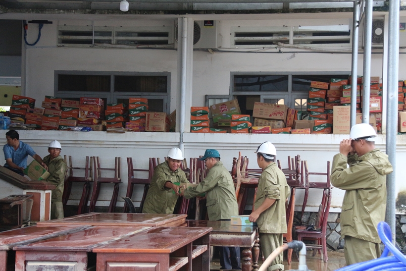 | Lực lượng chức năng hỗ trợ người dân dọn dẹp nhà cửa, khắc phục hậu quả thiên tai, vận chuyển đồ đạc khỏi khu vực ngập sâu. |