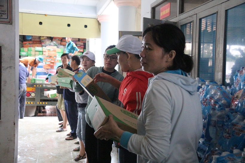 | Nhiều đoàn thiện nguyện đã chung tay quyên góp các nhu yếu phẩm để hỗ trợ người dân khắc phục hậu quả sau lũ. |