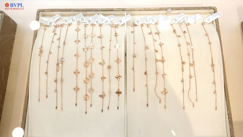 Bên cạnh hoa tươi, thị trường trang sức cũng bước vào giai đoạn cao điểm trước ngày 8/3. Tại nhiều cửa hàng, lượng khách đến tham khảo và mua sản phẩm tăng rõ rệt so với ngày thường.