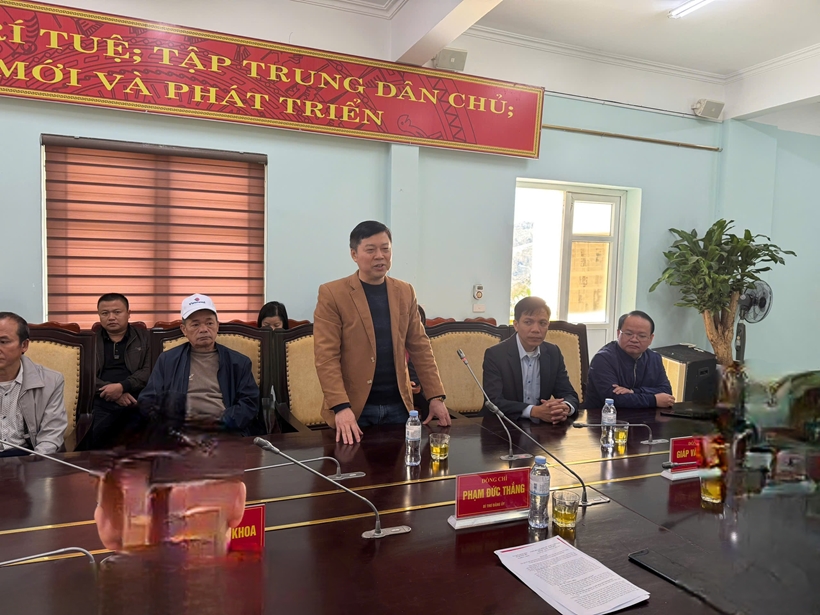 | Đồng chí Phạm Đức Thắng, Bí thư Đảng ủy xã Hoành Mô phát biểu tại buổi học tập, trao đổi kinh nghiệm với đoàn Sở Nội vụ tỉnh Thái Nguyên. |