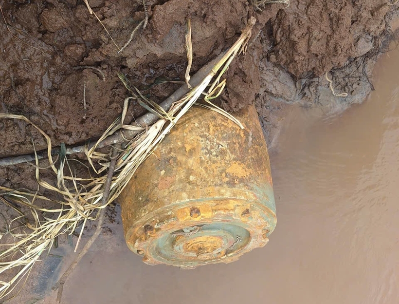 | Quả bom nặng 334kg tại suối Ea Hiao được người dân phát hiện. |