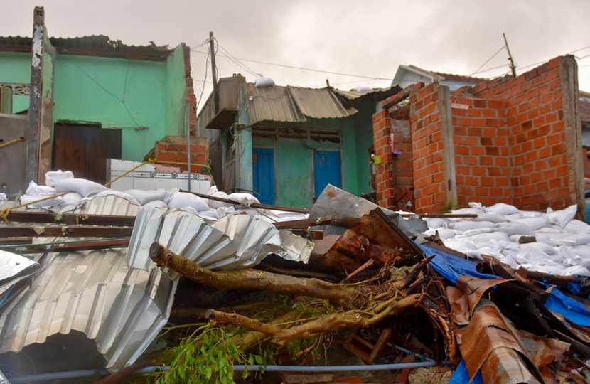 | Nhà dân bị hư hại sau bão số 5 tại Bình Định. Ảnh: Minh Hoàng |