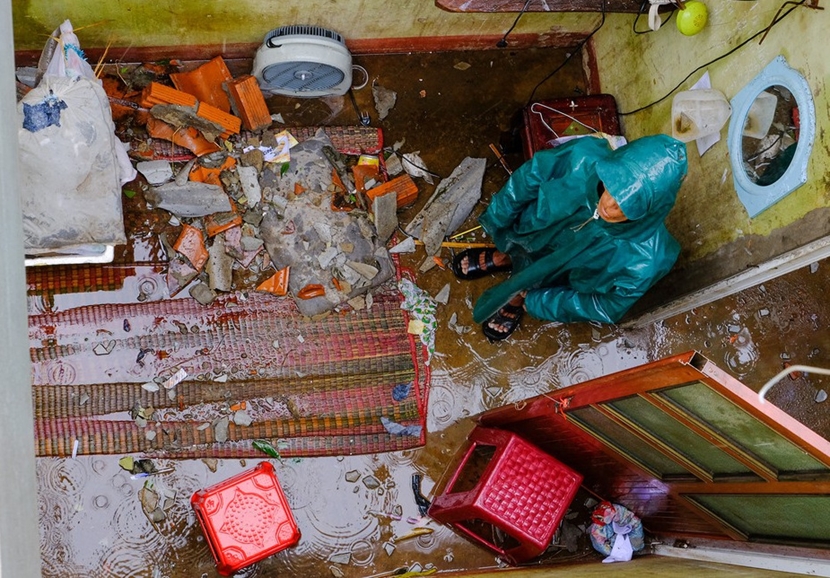 | Một căn nhà bị tốc mái trong bão số 5. Ảnh: Minh Hoàng |