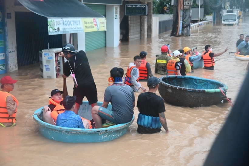 | Trong đợt lũ, các địa phương của tỉnh Khánh Hòa đã sơ tán 31.000 hộ/120.000 người ra khỏi vùng nguy hiểm. Ảnh: NH. |
