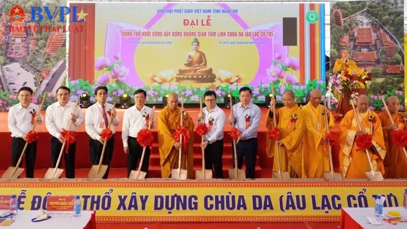 | Các đại biểu thực hiện nghi thức khởi công xây dựng Chùa Da. |