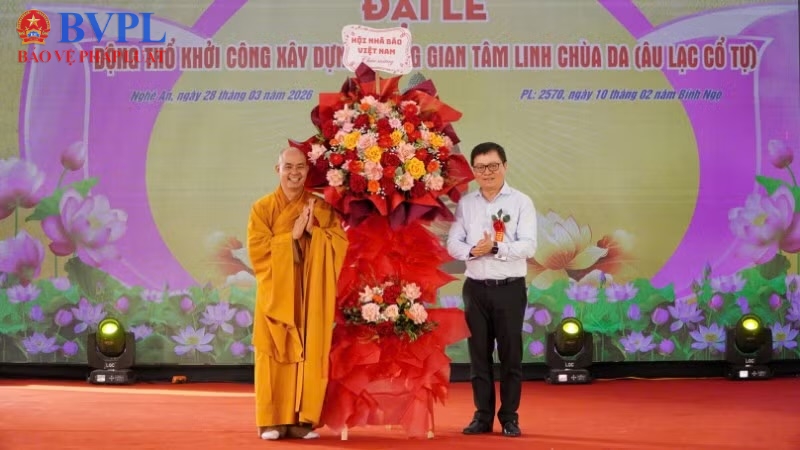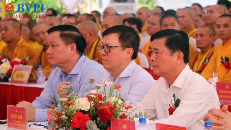 Các đồng chí Ủy viên Trung ương Đảng: Lê Quốc Minh, Tổng Biên tập Báo Nhân Dân, Phó Trưởng Ban Tuyên giáo và Dân vận Trung ương, Chủ tịch Hội Nhà báo Việt Nam; Thái Thanh Quý, Phó Trưởng Ban Thường trực Ban Chính sách, chiến lược Trung ương; Nguyễn Khắc Thận, Bí thư Tỉnh ủy Nghệ An, cùng đại diện chính quyền địa phương, đông đảo người dân, tăng ni, phật tử tham dự lễ.