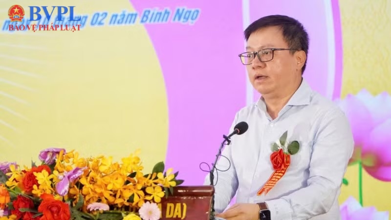| Đồng chí Lê Quốc Minh, Ủy viên Trung ương Đảng, Tổng Biên tập Báo Nhân Dân, Phó Trưởng Ban Tuyên giáo và Dân vận Trung ương, Chủ tịch Hội Nhà báo Việt Nam phát biểu tại lễ khởi công xây dựng. |