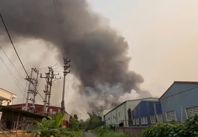 | Đám cháy tại khu vực bãi phế liệu có nguy cơ lan rộng vào khu vực nhà xưởng của doanh nghiệp. |