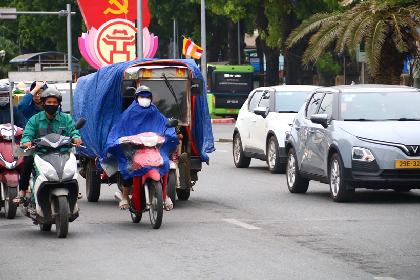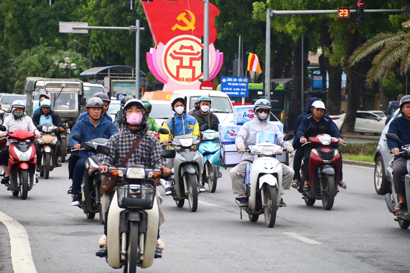 Để bảo vệ sức khỏe, nhiều người ra đường đã khoác thêm áo ấm, có người cả áo phao... |