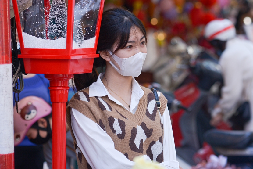 Tuy nhiên, lượng người đổ về đây phần đông là để chụp ảnh. Chia sẻ với phóng viên, bạn Nguyễn Thiên Minh (ở Đông Anh, Hà Nội) cho hay: "Tôi cũng giống các bạn khác là đến đây chủ yếu để chụp hình. Món đồ mọi người mua nhiều nhất là chiếc bờm tuần lộc. Giá của chúng khoảng 20-30 nghìn đồng/chiếc. Những món hàng như cây thông, người tuyết... đẹp mắt nhưng chắc chỉ những người kinh doanh nhà hàng, người có căn hộ mới đủ điều kiện để mua thôi".
