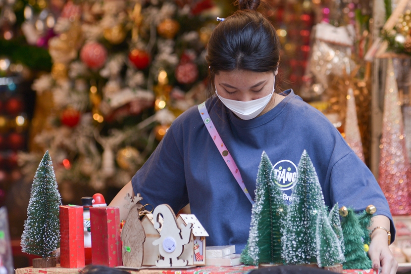 | Còn gần 1 tháng nữa mới đến Giáng sinh nhưng vào những ngày này, phố Hàng Mã đã rộn ràng khoe sắc rực rỡ với vô vàn đồ trang trí Noel. |