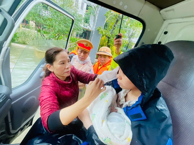 | Lực lượng chức năng tại TP Huế hỗ trợ một sản phụ mới sinh con được 7 ngày đến nơi an toàn. |