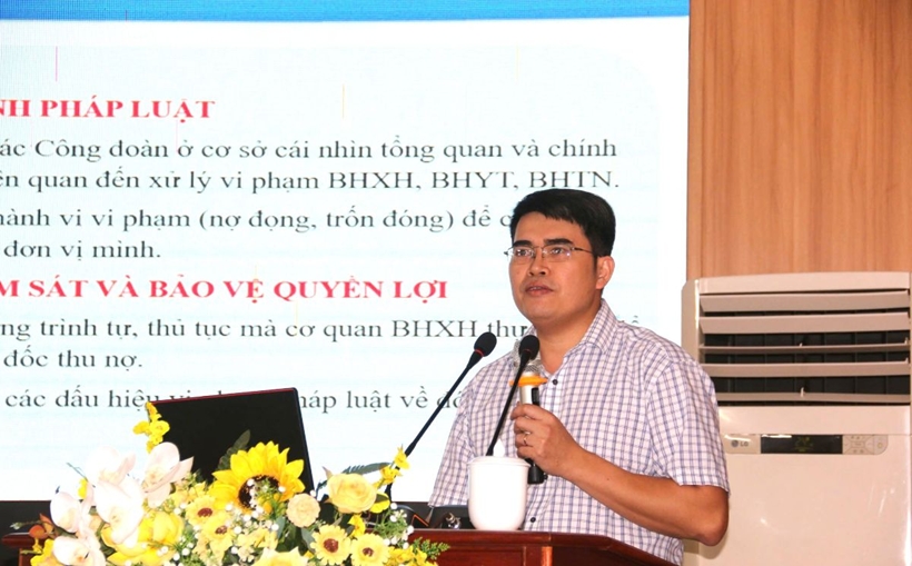 | Lãnh đạo BHXH tỉnh trình bày chuyên đề về quy trình xử lý vi phạm và tình trạng chậm, nợ đóng BHXH. |