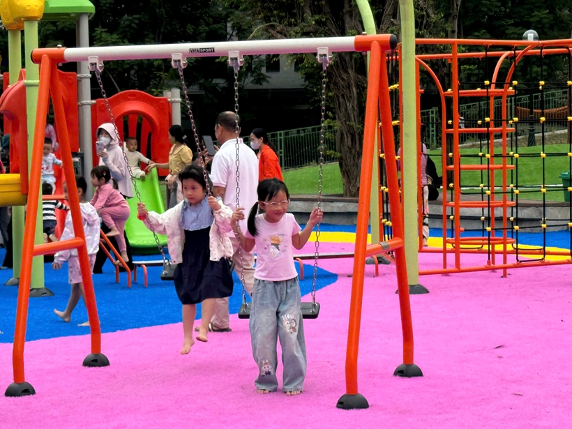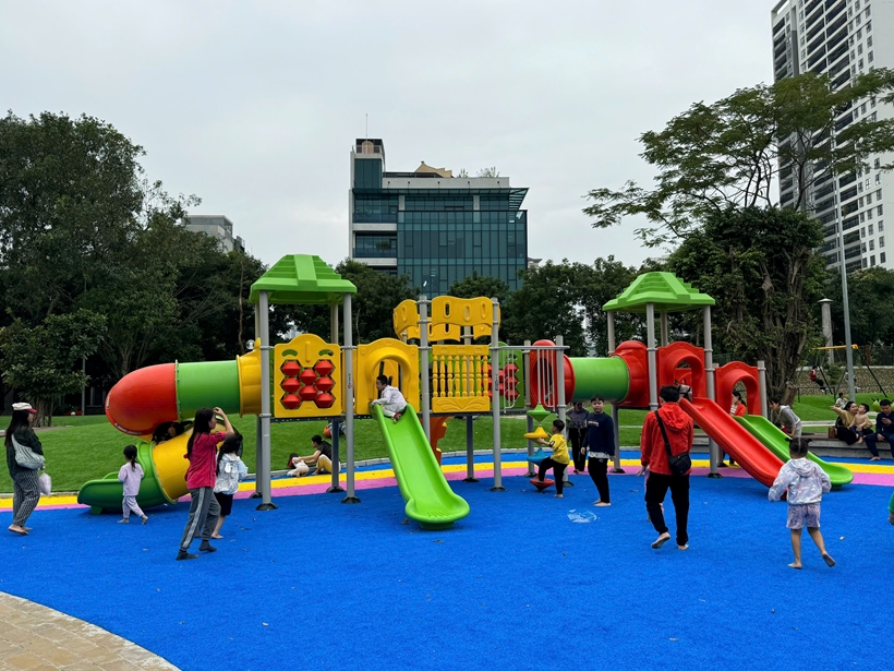 Đặc biệt, khu vui chơi trẻ em được đầu tư mới hoàn toàn với nhiều thiết bị vận động như tháp lưới, cầu trượt, bập bênh, xích đu được thiết kế an toàn, màu sắc sinh động, tạo nên không gian giải trí hấp dẫn cho các em nhỏ. Nhiều gia đình lựa chọn công viên làm nơi thư giãn vào mỗi cuối tuần, giúp các thành viên có thêm thời gian bên nhau, tăng cường gắn kết sau những giờ làm việc, học tập.