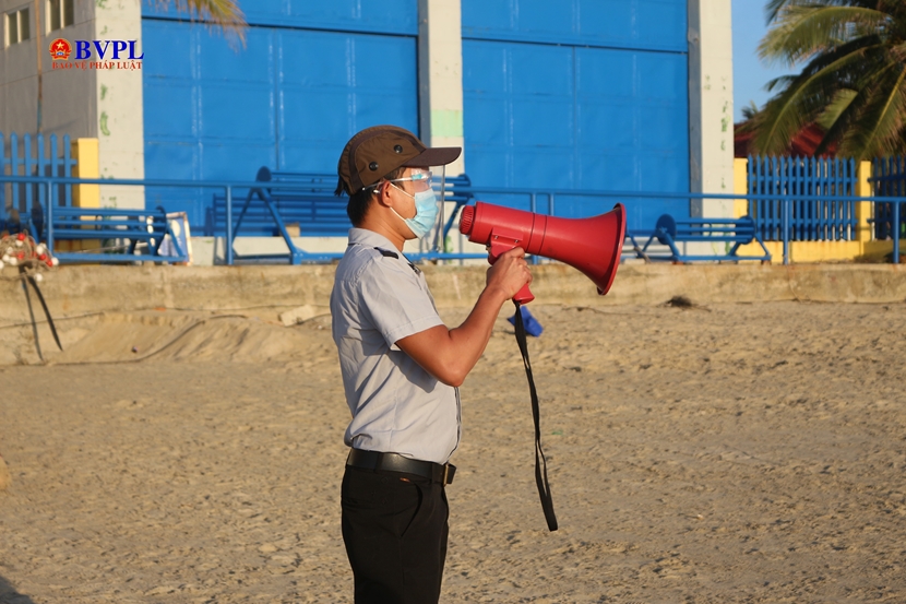 | Lực lượng nhân viên BQL Bán đảo Sơn Trà liên tục nhắc nhở người dân tuân thủ quy định phòng, chống dịch COVID-19.(ảnh: LT) |